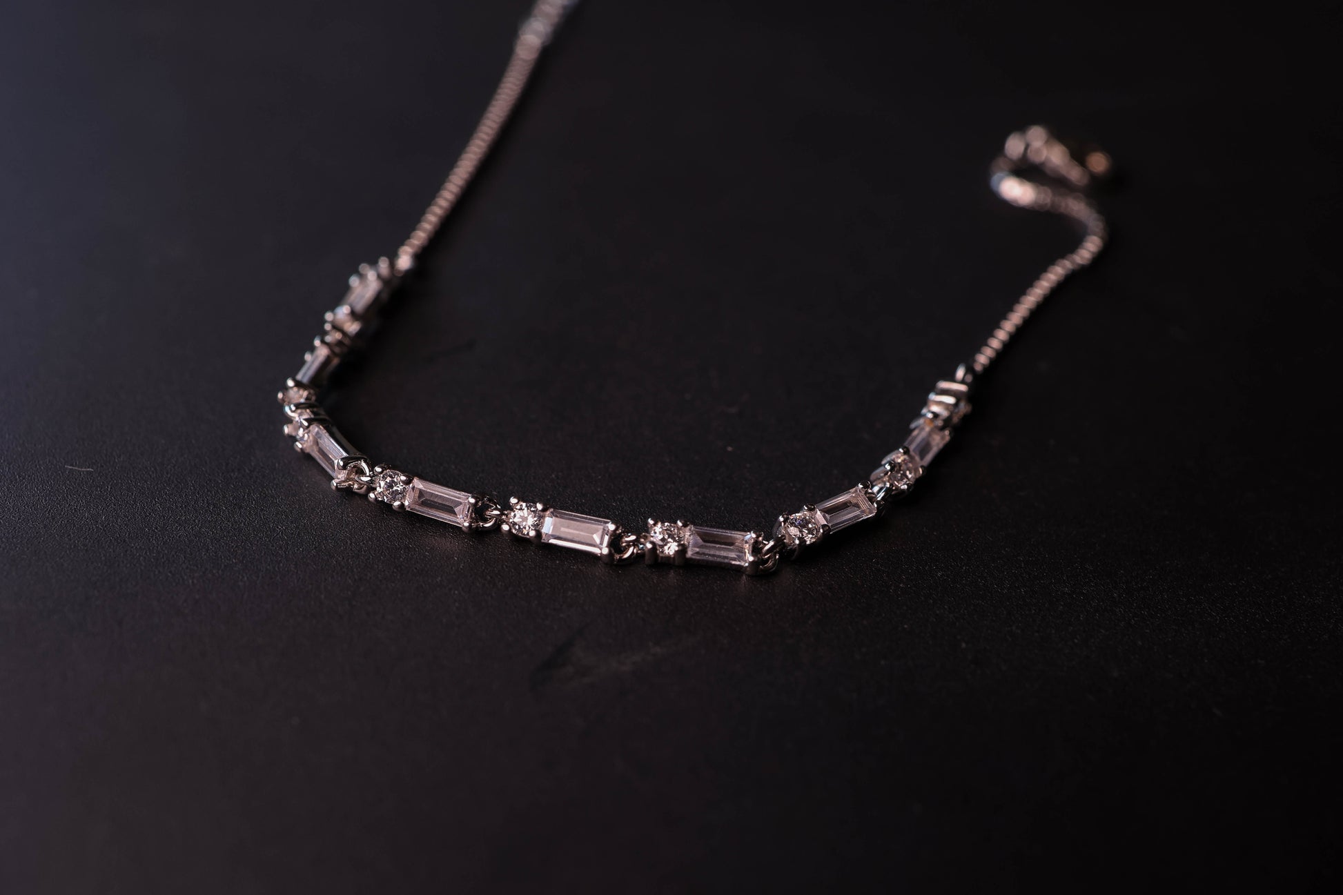 Crafted with pure 925 silver, this rectangular diamond garland bracelet boasts anti-tarnish and water-resistant properties. Its durable design ensures that the shine will stay as it is for endless wear. Elevate your style with this sophisticated and long-lasting piece.